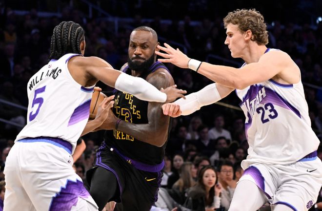 需要强调,这毕竟是小样本,只是詹姆斯回归打了两场和爵士的比赛。但换个角度,如果湖人连爵士的吉昂特乔治+米哈伊柳克+马卡宁都限制不了,怎么去对位西部前八的强队?东契奇和里夫斯不可能拆开去打替补,湖人就没办法做到攻守平衡。替补席确实有能防的球员,东契奇带最有效果,因为詹姆斯位置属性改变不了,年龄问题也是客观事实。湖人球迷应该为开赛以来球队的整体表现满意,但这过程太艰难了:赢球磕磕绊绊,输球一泻千里,内线只有艾顿能用,东契奇和里夫斯需要的队友,和詹姆斯位置冲突。